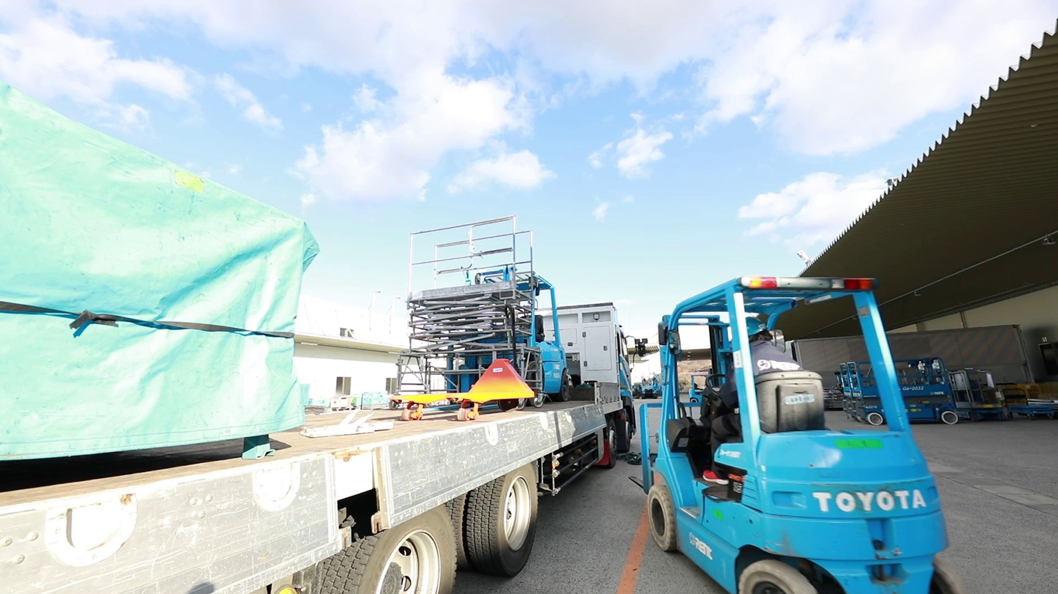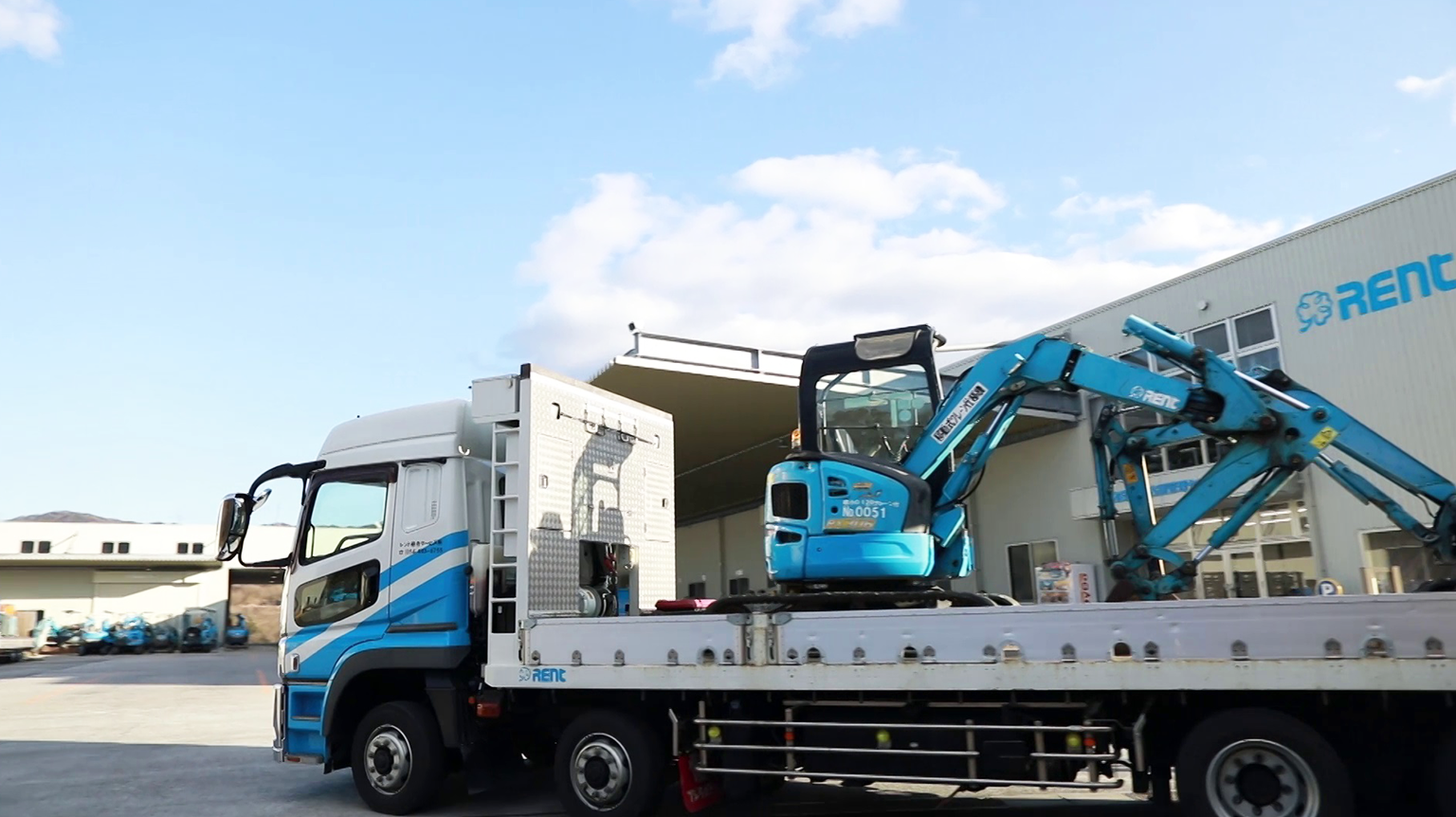 レントグループが取り扱う産業機械・建設機械等をトラックに載せてグループの拠点やお客様に配送するお仕事です。